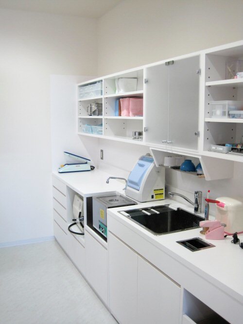 初めて訪れる歯科医院に緊張される方も少なくありません。そこで、そんな緊張を少しでも軽くして頂こうと、立ったままのハイカウンターだけではなく、座ってお話が出来るよう一部ローカウンターも設けました。
